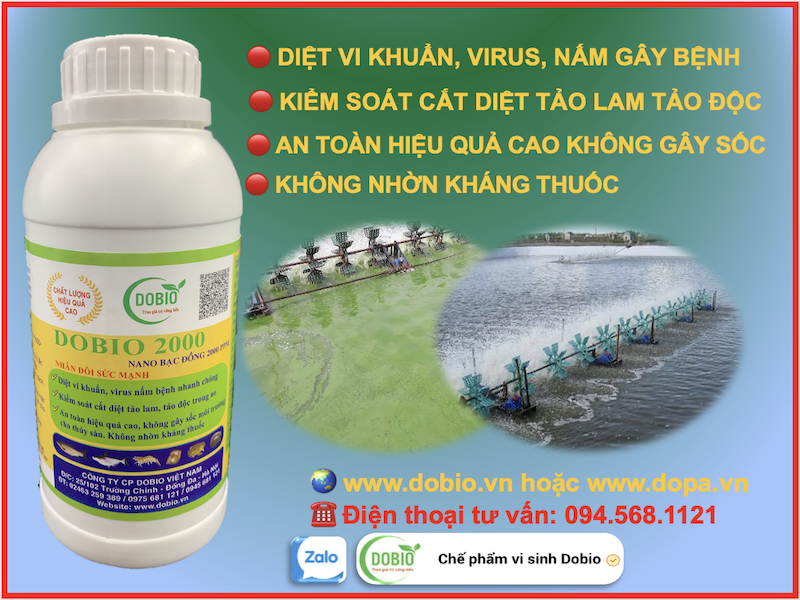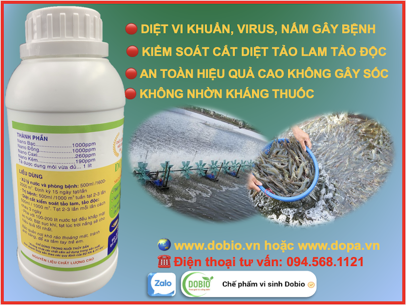 Là một trong những loại thuốc diệt khuẩn lành tính nhất thị trưởng hiện nay DOBIO 2000 nano bạc đồng sự lựa chọn tối ưu trong chăn nuôi thuỷ hải sản bởi nhiều công dụng tuyệt vời