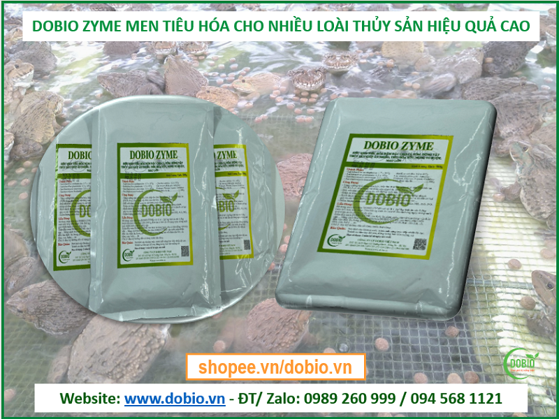 - Chế phẩm men vi sinh của nhà DOBIO tăng khả năng tiêu hóa, giúp thủy sản hấp thụ được dinh dưỡng từ thức ăn, giảm tỉ lệ tiêu tốn thức ăn (FCR) ở cá, tôm động vật thủy sản như ếch, lươn, baba, cua….