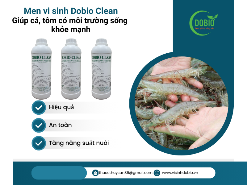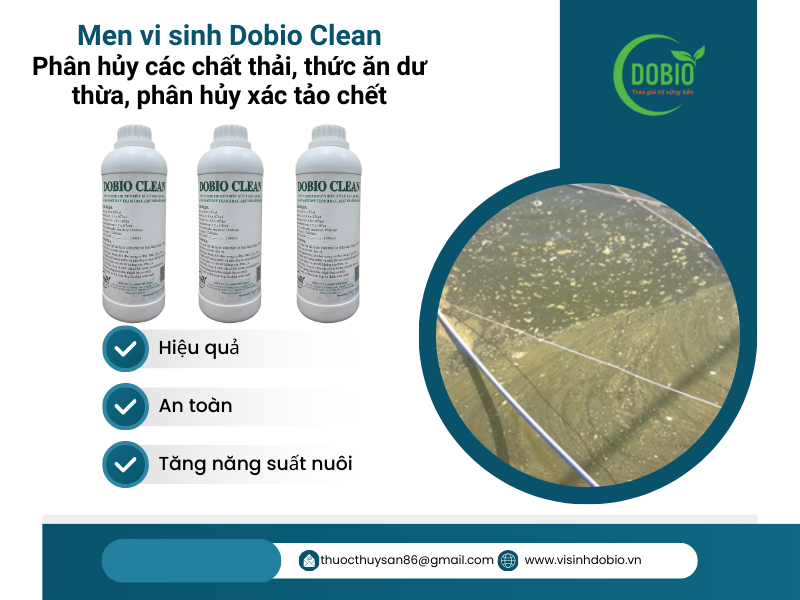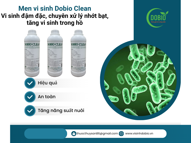 Men vi sinh Dobio Clean là một sản phẩm hiệu quả và an toàn trong việc xử lý nhớt đáy ao nuôi tôm cá. Sản phẩm không chỉ giúp giảm nhớt đáy, cải thiện chất lượng nước ao mà còn giúp tôm cá sinh trưởng và phát triển tốt, tăng năng suất.